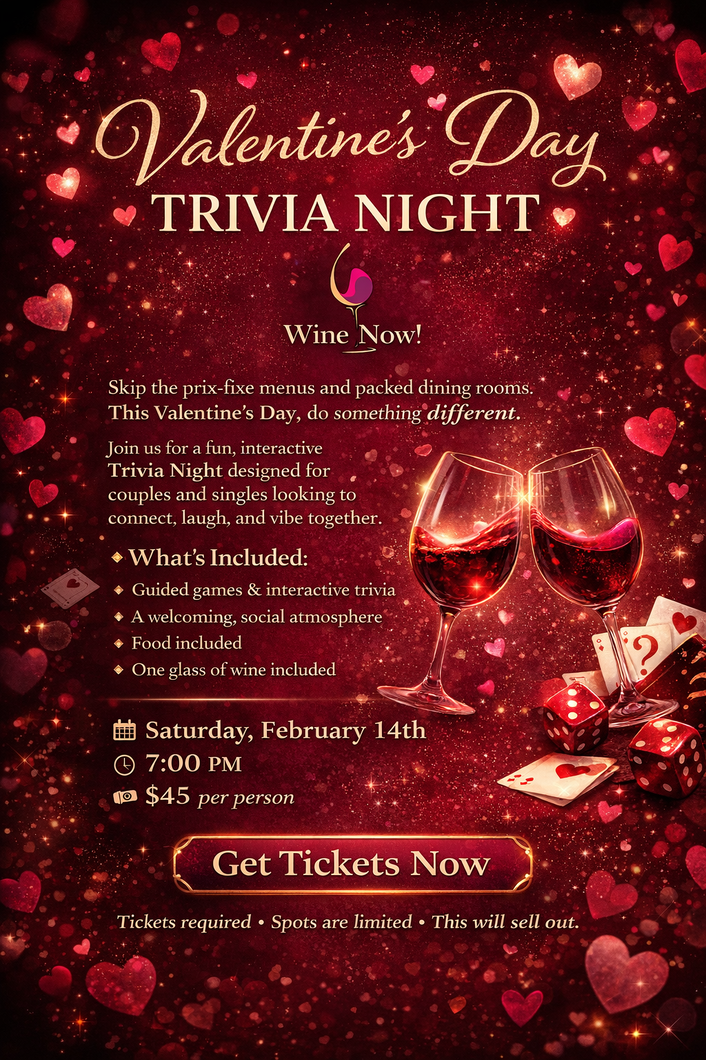 Sip some wine and test your love smarts at our fun Valentine’s Day Trivia Night at Wine Now!